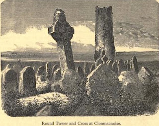 This Saint is called Cronan Beg, or the Little, owing probably to his want of ordinary stature. He is entered, in the Martyrology of Tallagh, at the 6th of April, as Cronbrice, Abbot of Cluana, or Clonmacnoise. The date of his birth has not been ascertained, nor does his genealogy seem to be known. This holy man most probably succeeded Colman, Abbot, who died, in the year 681. Then was his successor elected to rule, in a spot, greatly resorted to, even from distant regions. The pilgrimage to holy places is one of the oldest of Christian institutions. The first known visits were to Jerusalem, and to other parts of Judea. Thus, Helena, the pious mother of the Emperor Constantine, hastened as a pilgrim to the Holy Land, when she visited the scenes of our Redeemer's passion. The Empress returned, bringing with her the true cross, with other relics of Christ's death; and, from that time forward, pilgrimages to the Holy Land were annually made by thousands, from every part of Christendom. Our Irish countrymen frequently visited this distant land, and usually combined with their journey a pilgrimage to the shrines of the Apostles, St. Peter and St Paul, at Rome. Hardships, persecutions, and even death itself, often overtook the zealous and devoted pilgrim. The tremendous conflicts, which shook Palestine during the period of the Crusades, barred the road thither to all but the most hardy, adventurous, and daring. The subsequent loss of the Holy City, all but closed its gates against the Christians. At and before this era, the practice of national pilgrimages grew into transcendent importance. Instead of turning towards the Holy Sepulchre, the penitent wended his way, towards some shrine in his native land, famous for some deed of sanctity, or for some spiritual manifestation. In Ireland, Lough Derg, Kildare, Glendalough, and Clonmacnoise, were the great pilgrimages. The ten ruined churches, which surround St. Kieran's grave at the latter place, are said to have been the offering of ten royal pilgrims, who knelt at his shrine. Among the religious foundations here is shown, what purports to have been a church or chapel of the nunnery, said to have been built in 1170, by Dearvoirgilla, and it was consumed, with other buildings, by an accidental fire, A.D. 1180.