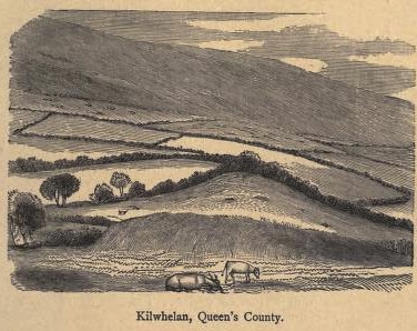 Although Archdall asserts, that the place was unknown, such is not the case; for, Kilwhelan was situated on one of the western slopes of the Cullinagh Mountains, in the Queen's County. The name is still locally preserved. It lay also within the ancient territory of Leix. It is remarkable, that an old disused burial-ground may yet be seen in this townland; while tradition avers, that an old church formerly marked the site, with even greater prominence. The writer has often visited this spot, in early youth, and long before he had acquired a knowledge of its having had a former historic celebrity. At that time, the mound of human remains was a much more prominent object over the surface of an open field, than it now is; cattle have since trampled it down, in its exposed and neglected situation. However, at no time within the present century has there been even a head-stone to mark the site of a grave; but, the peasantry relate, that when the adjoining earth had been turned—even with the plough—human remains, and also pieces of coffins, have been unearthed, which prove, that formerly it was much used as a place for interment.